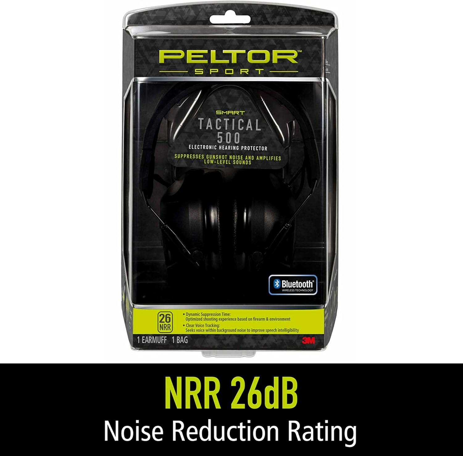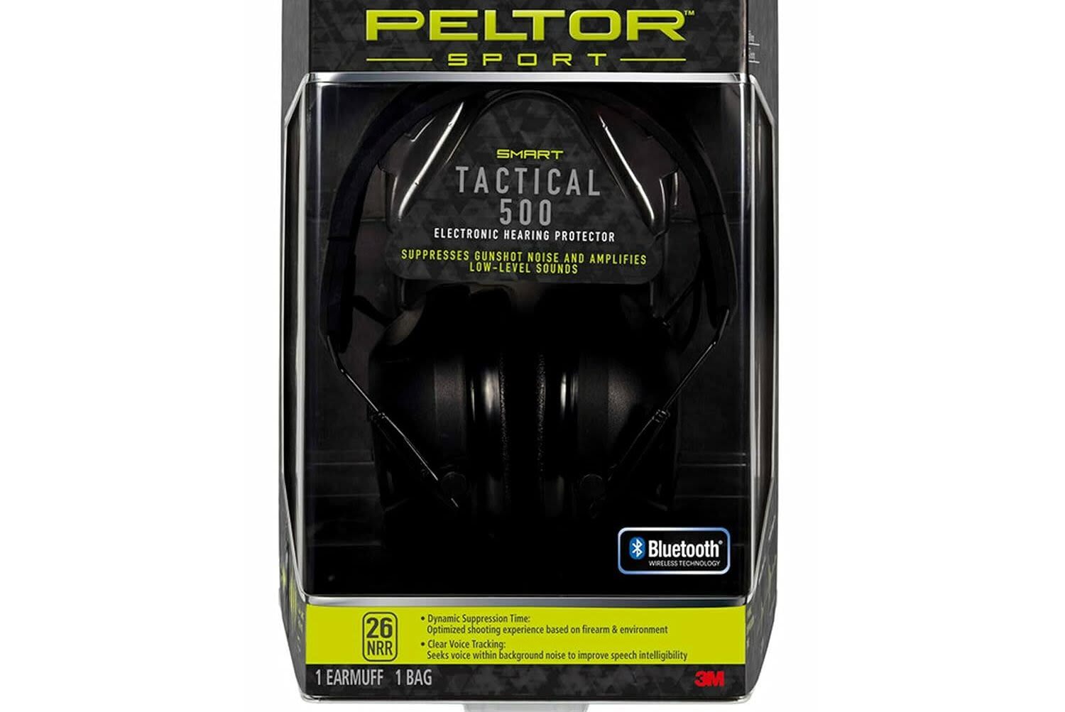 Ideal for indoor and outdoor shooters, the Peltor Sport Tactical 500 will be available with a noise reduction rating of 26 dB. A great protector but allows you to communicate. Dynamic Suppression Time automatically adjusts suppression based on the energy in the gunshot to minimize echo and enhance comfort.
